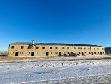 Storage Quonset with two canvas, roll-up doors. Concrete slab along perimeter for pallet racking. Stabilized dirt floor. New canvas cover installed in 2024.