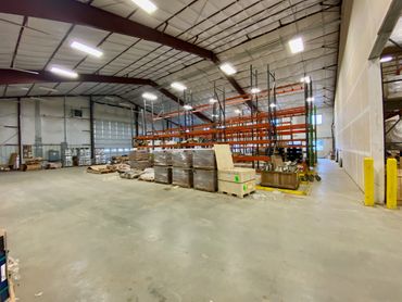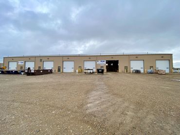 Expansive shop featuring 8 drive-in bays with 14' overhead doors, plus an extra 18' overhead door at the end of the building. There is a pressure testing bay with floor drain and 1/2-ton crane. The adjacent bay features a paint booth and 1/2-ton crane. Storage mezzanine with forklift access and a steel staircase. Three-bay warehouse with separate office, The fully finished office area features a kitchen, locker room, and 3 private offices.